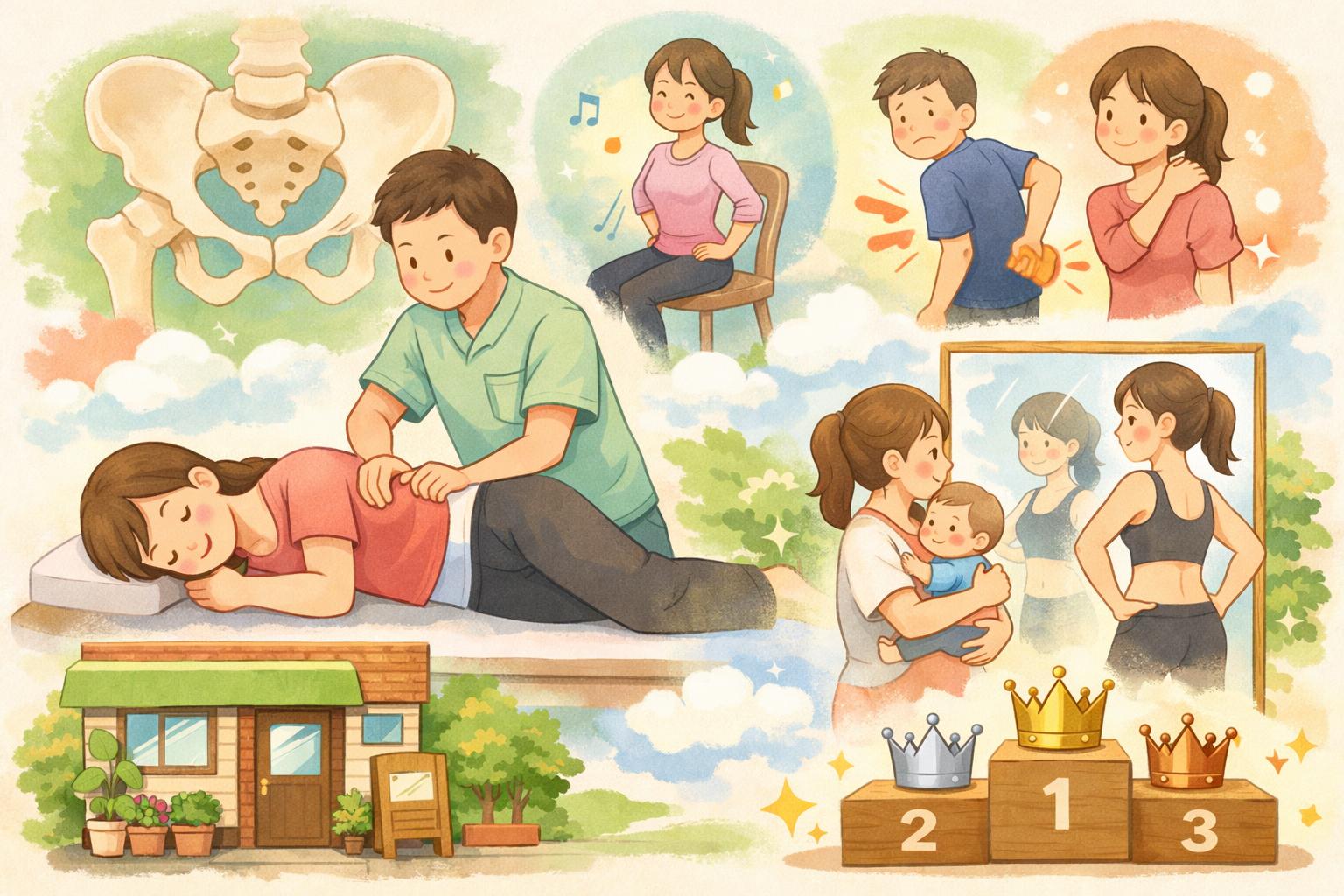 以下に、産後の骨盤矯正がもたらす主なメリットをまとめました。
